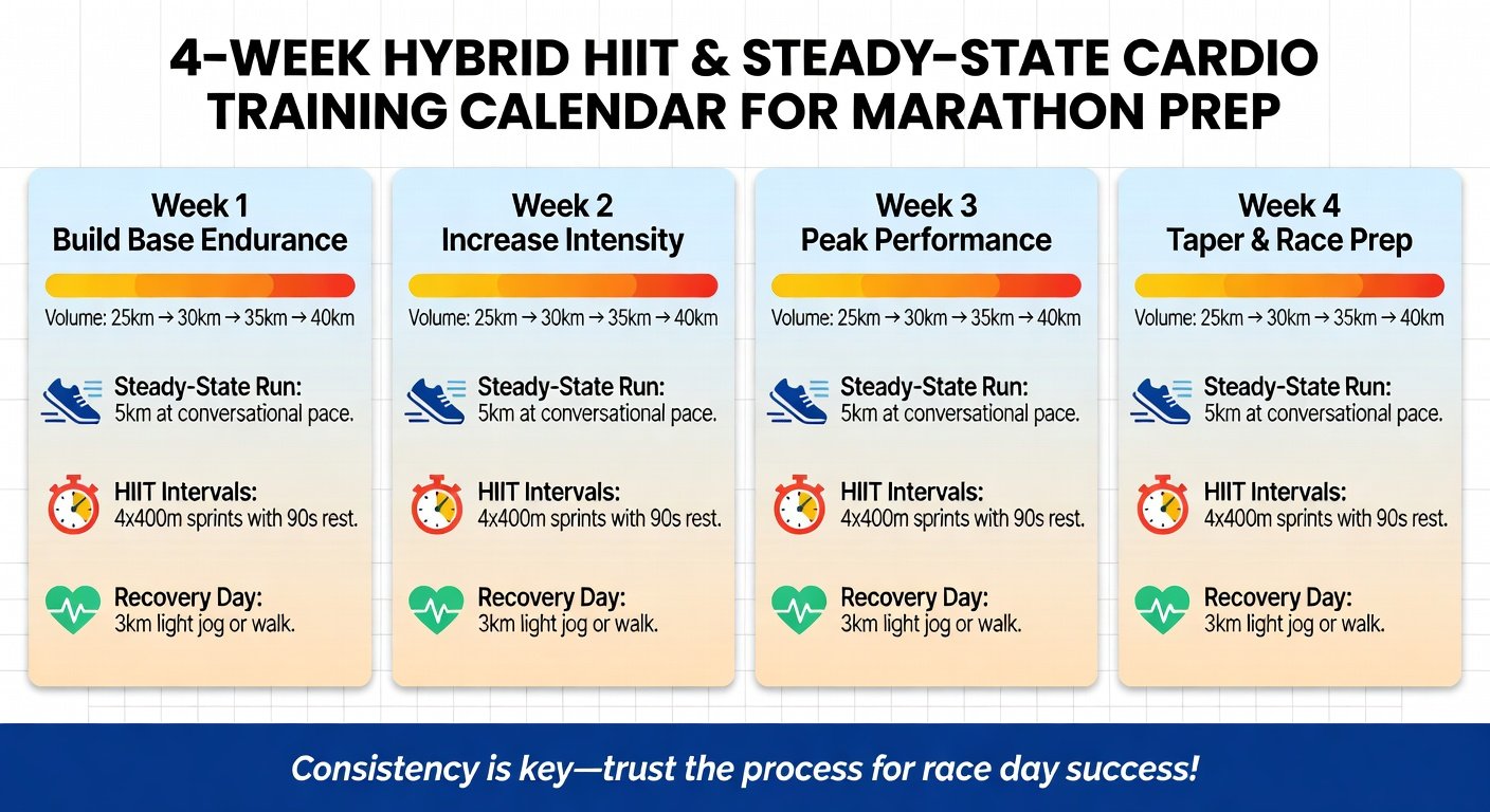 For 2026 marathon success, hybrid is king. HIIT turbocharges VO2 max and speed; steady-state forges unbreakable fatigue resistance. Start this 4-week block now, scale up, and you'll cross that finish line stronger. Consult a coach for personalization.