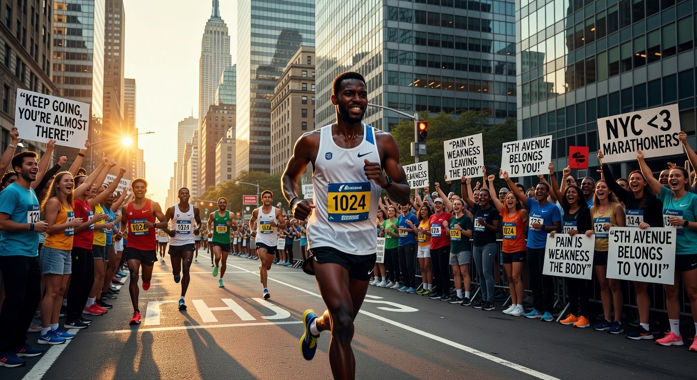 - Miles 21-26.2 (Final Push): The Wall hit at 22, legs burning. 5th Avenue's endless climb tested soul—spectators 10-deep, signs like 'Pain is temporary, glory forever.' Dug deep, negative split last 5K. Splits: 7:50 to 7:30 finish kick.